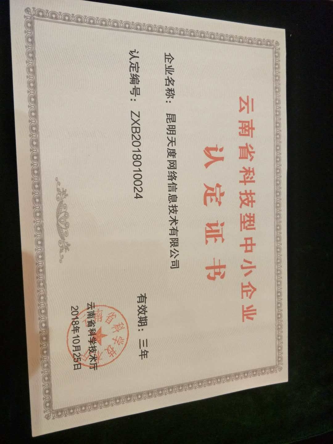 經(jīng)科技部門審核,確定天度符合科技型中小企業(yè)要求,3月29日,昆明天度網(wǎng)絡(luò)信息技術(shù)有限公司成功入庫登記成為2018年“全國科技型中小企業(yè)”!