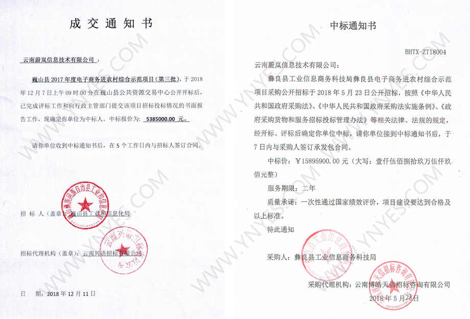 蔚嵐中標(biāo)巍山縣、彝良縣電子商務(wù)進(jìn)農(nóng)村綜合示范項目