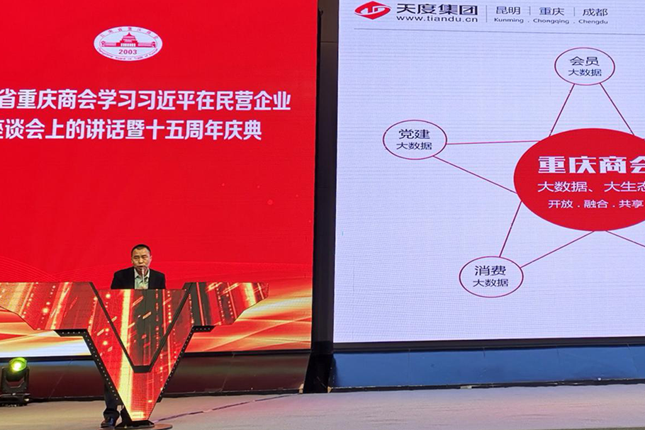 2018年12月21日下午,云南省重慶商會在云安會都國際會議中心隆重舉行主題為《云南省重慶商會學習習近平總書記在民營企業(yè)座談會上的講話暨十五周年》活動,云南省人民政府副省長王顯剛,云南省政協(xié)副主席、省工商聯(lián)主席喻頂成等領導出席了會議,天度集團董事長鄭桂文現(xiàn)場對“商會大數(shù)據”建設情況進行介紹并出席了大數(shù)據平臺啟動儀式。