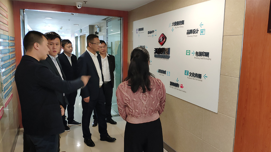 2019年3月23日,盤州市投資促進局局長郭殿榮等領導蒞臨天度集團指導工作,盤州市工業(yè)和信息化局副局長何浩、盤州市東盟辦副主任胡鵬、盤州市農林投公司董事長張俊林、盤州市宏財集團聚農公司總經(jīng)理朱波、盤州市西南盤興電子商務有限公司副總經(jīng)理黃俊等相關部門領導一同參加指導工作。天度集團董事長鄭桂文、云南天度大數(shù)據(jù)產(chǎn)業(yè)發(fā)展有限公司董事胡曉玲 、昆明天度網(wǎng)絡信息技術有限公司總經(jīng)理楊副總經(jīng)理 、云南天度軟件系統(tǒng)有限公司總經(jīng)理張羽昊、昆明天度網(wǎng)絡信息技術有限公司總監(jiān)程明陪同考察。