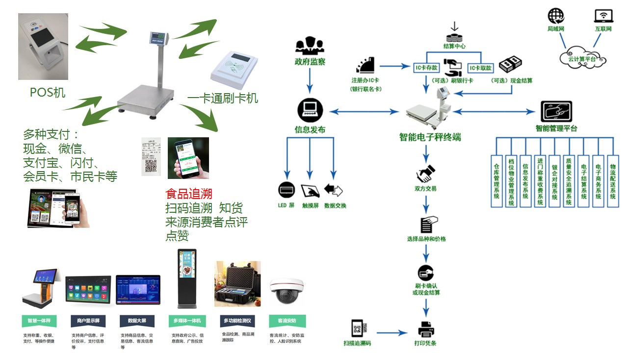 利用物聯(lián)網(wǎng)、云計(jì)算、大數(shù)據(jù)、人工智能、區(qū)塊鏈等信息技術(shù),為市場配備了智慧電子稱、商戶屏、攝像監(jiān)控等設(shè)備及智慧管理平臺,涵蓋“市場、商戶、物業(yè)、經(jīng)營、場務(wù)、數(shù)據(jù)、設(shè)備”各方面管理,實(shí)現(xiàn)市場可管控、可感知、可追溯、合同電子化、收費(fèi)智能化、運(yùn)營智慧化、數(shù)據(jù)一體化,極大降低了人工成本。利用AI技術(shù),實(shí)現(xiàn)水電、停車、人員、防疫等的智能管理,促進(jìn)市場有序高效運(yùn)行,同時(shí)大數(shù)據(jù)實(shí)時(shí)記錄公開透明,產(chǎn)品價(jià)格、農(nóng)殘檢測、產(chǎn)品溯源、商戶證照信息一目了然,交易可追溯,讓老百姓的"菜籃子”拎得更舒心、放心、開心。
