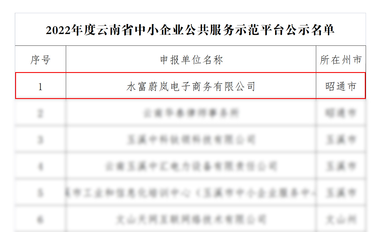 水富蔚嵐電子商務(wù)有限公司獲“省級中小企業(yè)公共服務(wù)示范平臺”認(rèn)定