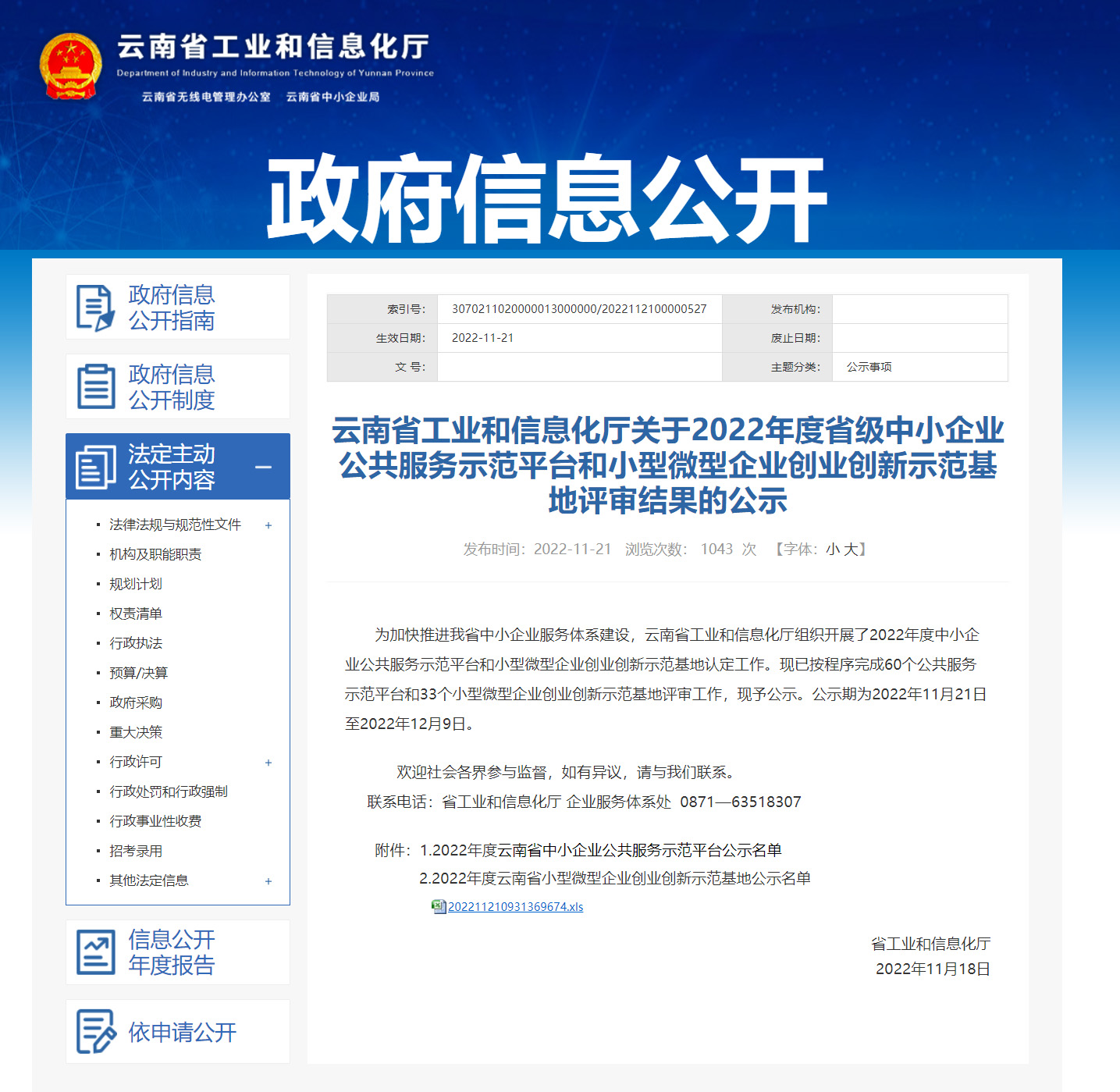為加快推進(jìn)我省中小企業(yè)服務(wù)體系建設(shè),云南省工業(yè)和信息化廳組織開展了2022年度中小企業(yè)公共服務(wù)示范平臺和小型微型企業(yè)創(chuàng)業(yè)創(chuàng)新示范基地認(rèn)定工作,天度集團(tuán)全資子公司“水富蔚嵐電子商務(wù)有限公司”獲得“省級中小企業(yè)公共服務(wù)示范平臺”認(rèn)定。