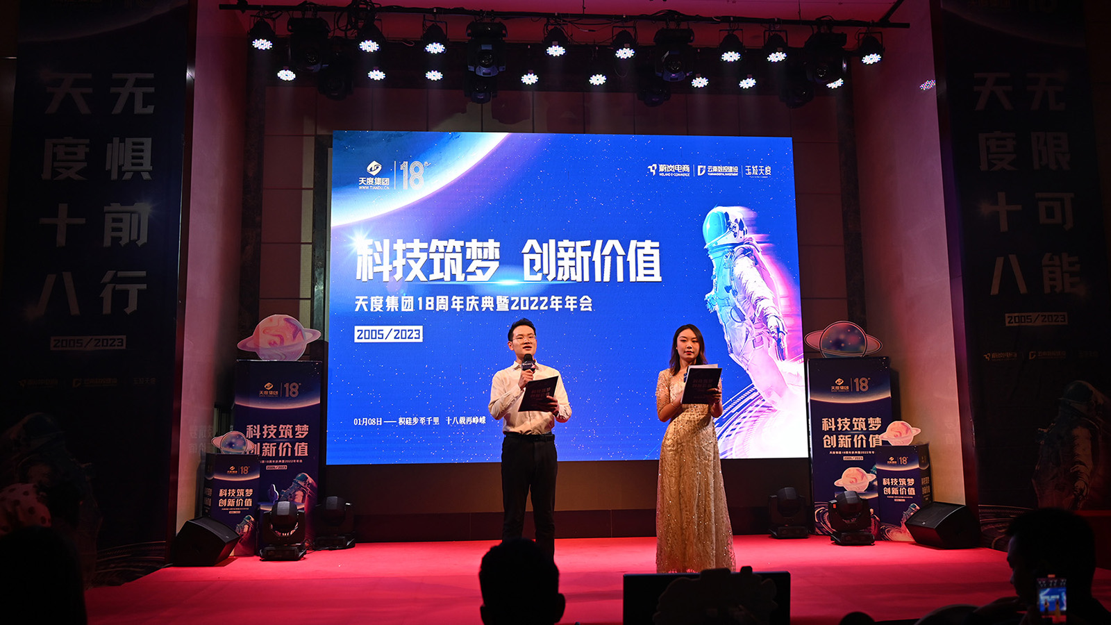 2023年1月8日,科技筑夢·創(chuàng)新價(jià)值—天度集團(tuán)18周年慶典暨2022年年會(huì)在西南賓館圓滿落幕,集團(tuán)及各公司同仁齊聚一堂,共慶天度集團(tuán)發(fā)展成果,共享年會(huì)歡樂時(shí)光!