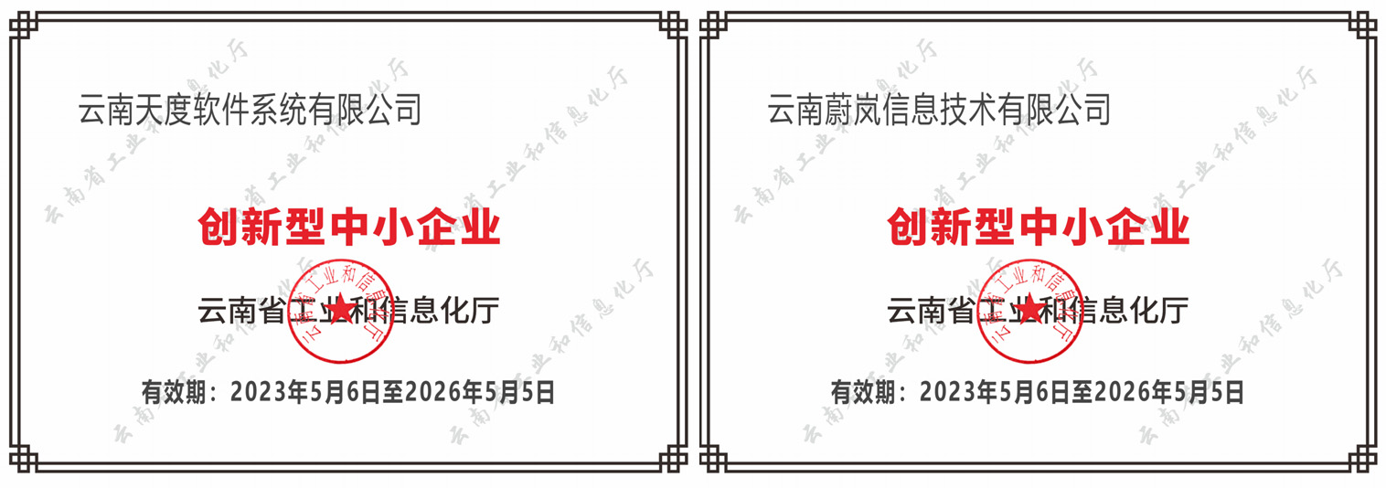 天度軟件入選云南省專精特新中小企業(yè)、創(chuàng)新型中小企業(yè)、國家科技型中小企業(yè)名單