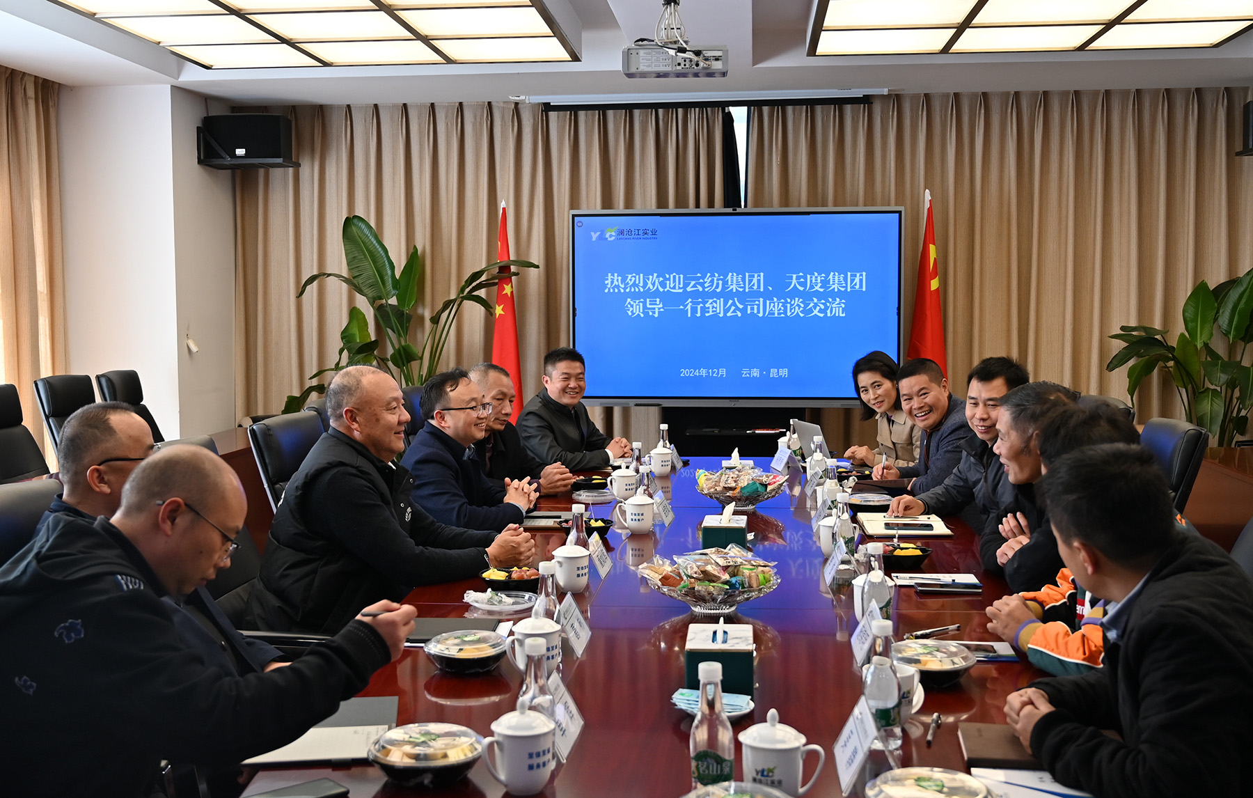 12月12日,云紡集團黨委副書記、紀委書記李俊,天度集團董事長鄭桂文一行到云南瀾滄江實業(yè)有限公司開展業(yè)務座談交流。云南瀾滄江實業(yè)有限公司董事長董燦輝、總裁金克斌、執(zhí)行總裁葛彬及辦公室、招投標中心、昆明分公司相關負責人參加座談。三方圍繞開展務實合作、實現(xiàn)發(fā)展共贏進行深入交流。