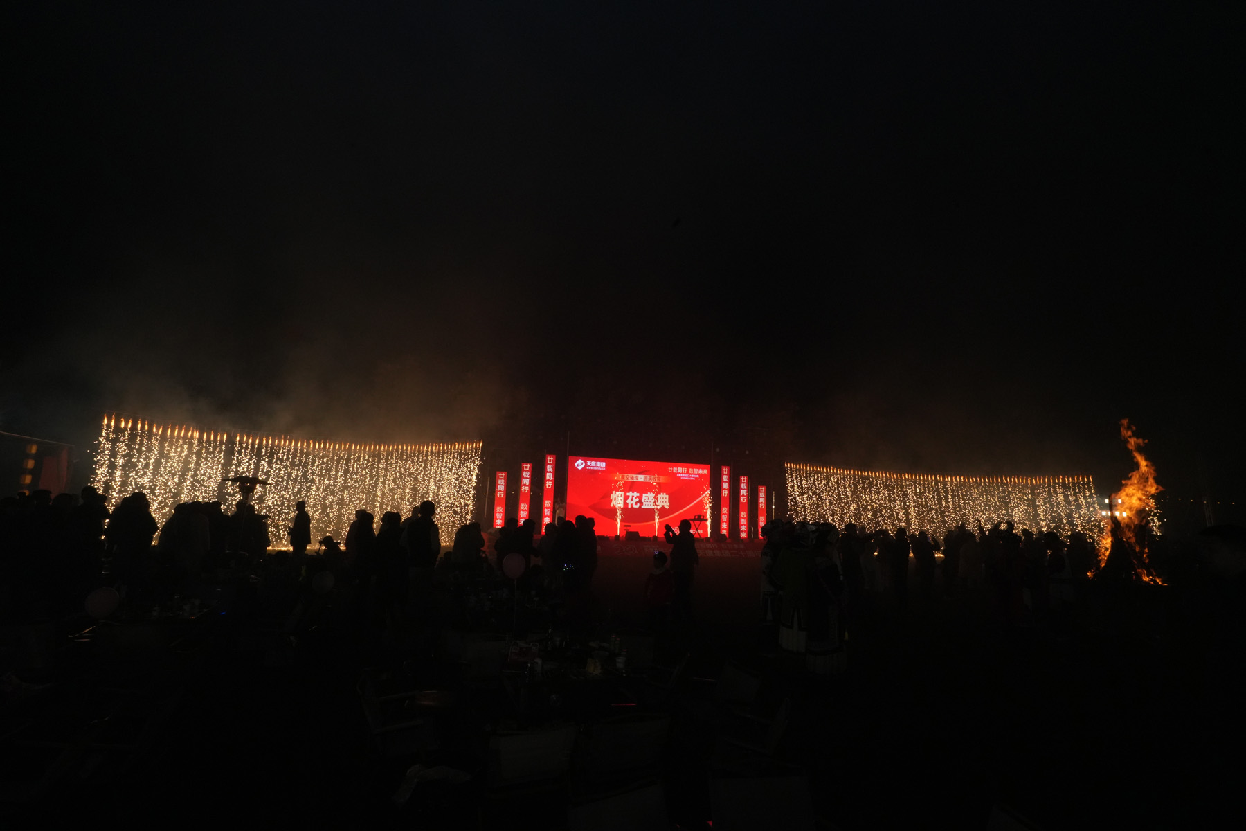 晚上七點(diǎn)半,伴隨主持人倒數(shù),一束束流光劃破夜空,絢麗的煙花層層綻放,如錦繡般鋪滿天幕。所有人共同仰望,在這璀璨時(shí)刻,許下對(duì)天度、對(duì)彼此最美好的祝愿。 煙花落幕后,篝火旁溫情延續(xù)。多位員工與嘉賓即興上臺(tái)表演,歌聲、朗誦、趣味互動(dòng)接連不斷,為夜晚增添了無(wú)數(shù)驚喜與感動(dòng)。
