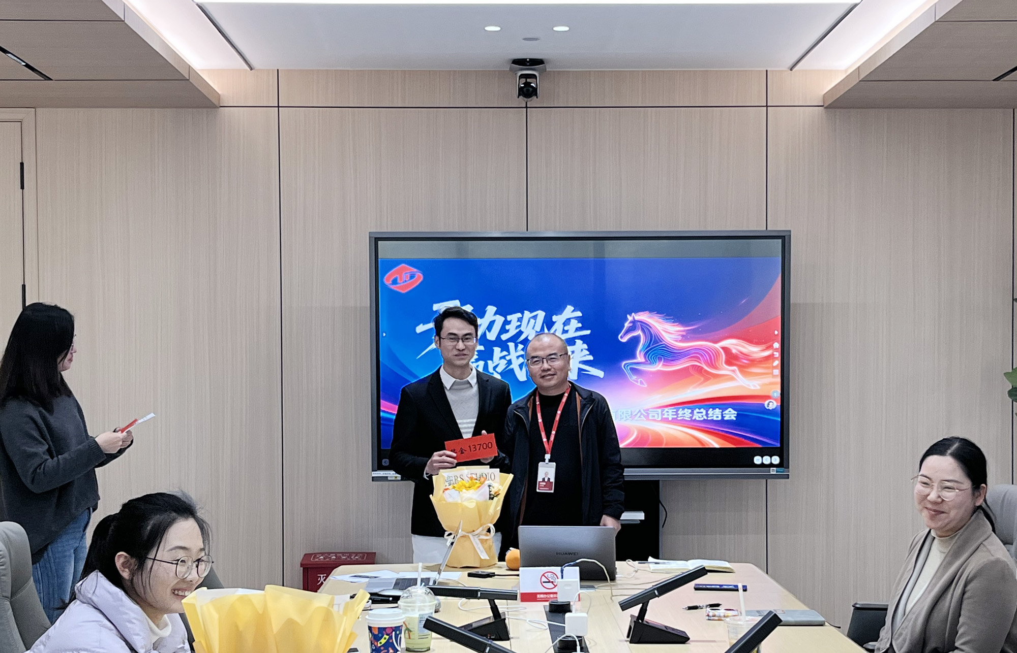 下午的總結(jié)環(huán)節(jié)中,集團(tuán)副總經(jīng)理劉靖回顧了公司2025年在產(chǎn)教融合方面取得的進(jìn)展,感謝全體員工的努力付出,并對(duì)2026年的發(fā)展方向作出部署,鼓勵(lì)大家不斷學(xué)習(xí)、突破自我,提升團(tuán)隊(duì)整體戰(zhàn)斗力。 隨后進(jìn)行的年度嘉獎(jiǎng)環(huán)節(jié),揭曉了 “客戶夸獎(jiǎng)收割機(jī)”“團(tuán)隊(duì)能量發(fā)動(dòng)機(jī)”“幕后隱形守護(hù)者”“團(tuán)隊(duì)帶飛一把手” 四項(xiàng)趣味又暖心的獎(jiǎng)項(xiàng)。集團(tuán)領(lǐng)導(dǎo)向年度成績(jī)優(yōu)異的員工頒發(fā)年度業(yè)績(jī)獎(jiǎng)金,表彰大家一年來的不懈努力,獲獎(jiǎng)同事收獲了量身定制的頒獎(jiǎng)詞與業(yè)績(jī)獎(jiǎng)金,這份認(rèn)可也激勵(lì)著每一位踏實(shí)前行的天度人。