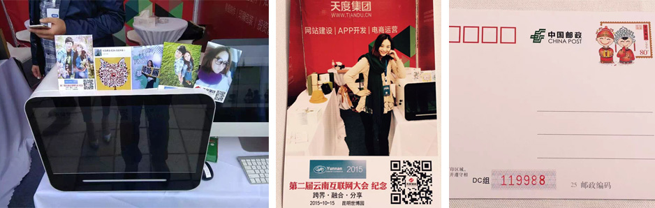 天度集團(tuán)作為云南本土很大的互聯(lián)網(wǎng)服務(wù)企業(yè),在本次參展中,向業(yè)界展示了“互聯(lián)網(wǎng)+”系列服務(wù)及產(chǎn)品,并聯(lián)合云南省郵政局展示了“互聯(lián)網(wǎng)+郵政”的系列應(yīng)用。在本次大會中,天度集團(tuán)參展展位為大會嘉賓免費提供了“第二屆云南省互聯(lián)網(wǎng)大會紀(jì)念”個性化明信片打印,并取得廣泛關(guān)注和好評。